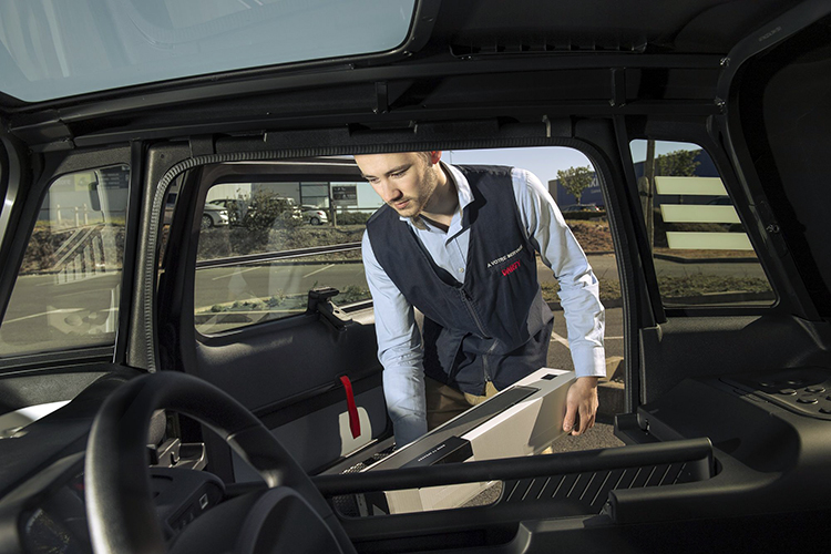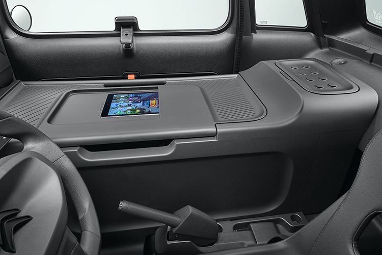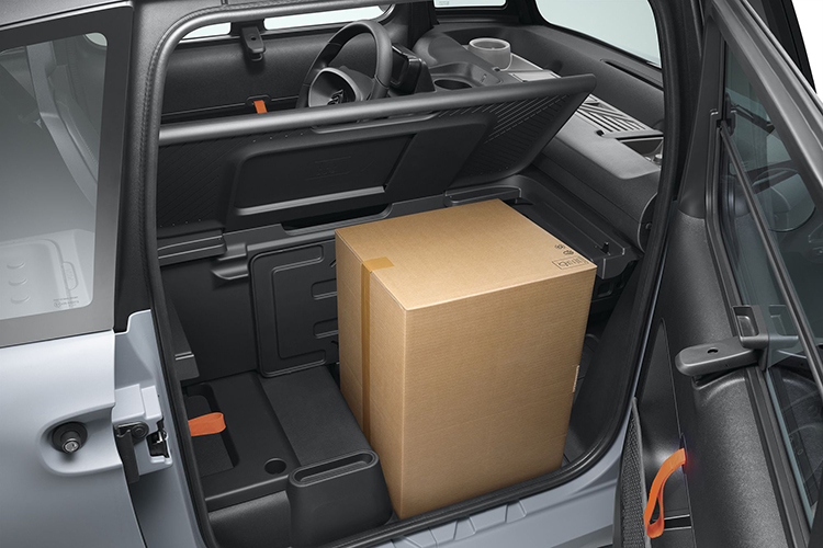 Кресло пассажира заменено запираемым кнопками пластиковым боксом (объёмом 260 л), поделённым на семь модулей. Съёмная полка, служащая крышкой, способна выдержать нагрузку в 40 кг. Есть место для документов формата А4. Двухуровневый пол с фиксаторами вмещает предметы длиной 1,2 м.