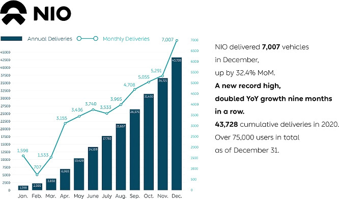 «2020 год был непростым для всего мира. На этом фоне NIO последовательно достигала новых вершин и завершила год на высокой ноте, поставив в декабре более 7000 автомобилей», — отметил основатель, председатель совета директоров и исполнительный директор NIO Уильям Бин Ли (William Bin Li).