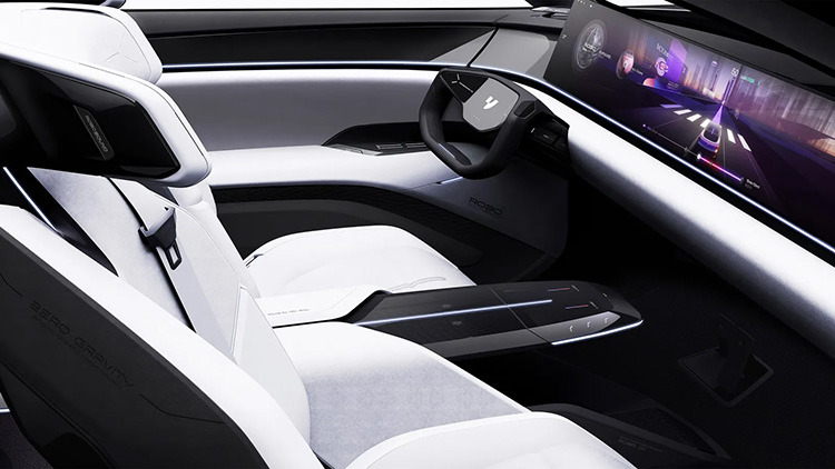 Первенец этой кооперации — кроссовер Robo-01, демонстрирующий новое поколение автомобилей эры Intelligent Car 3.0. В электрокаре используются так называемые активно деформируемые структуры, то есть элементы разной степени подвижности. В их числе выдвижные лидары на капоте (ими управляет искусственный интеллект), подъемное заднее антикрыло ROBOWing, складной U-образный руль, подъемные динамики-сателлиты и адаптивные подголовники сидений Zero Gravity.