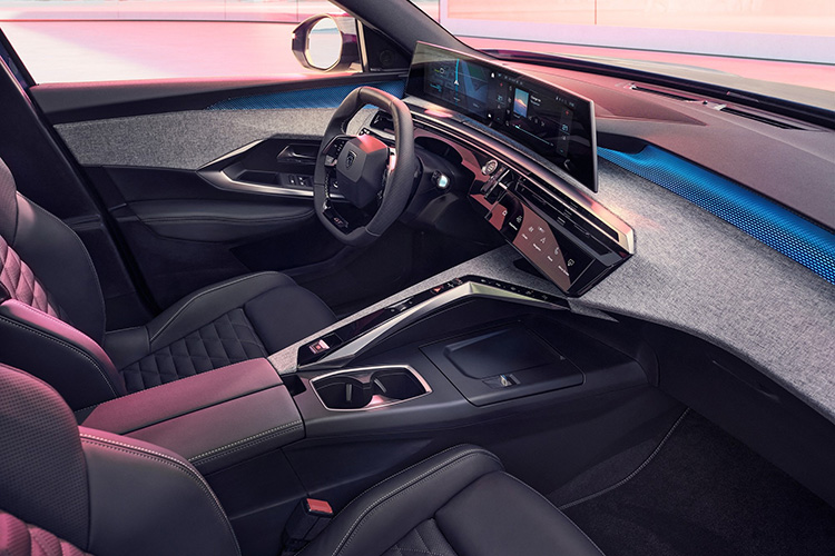 В отделке салона, впрочем, доминирует экологически чистый текстиль, эффектно подсвеченный светодиодами. Передняя панель имеет очень мудрёную, многоярусную форму, на её вершине у дорогих версий находится 21-дюймовое двухэкранное панорамное табло, а в «базе» вместо него установлены два раздельных 10-дюймовых экрана (приборный и мультимедийный) на общей «дощечке».