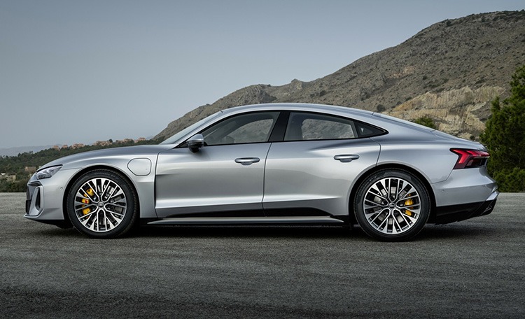 Внешность изменена точечно. Появился новый передний бампер с пересмотренными воздухозаборниками и уменьшенным количеством черного глянца. Версия RS e-tron GT стала выглядеть еще агрессивнее благодаря развитому обвесу с массивным диффузором на корме. А на вершине гаммы расположилась новая модификация RS e-tron GT performance, для которой за доплату предложены углепластиковый декор и матовая окраска крыши. Пересмотрены палитра цветов кузова и дизайн колес. Например, появились кованые колеса диаметром 21 дюйм в стиле концепта Audi Avus 1991 года.