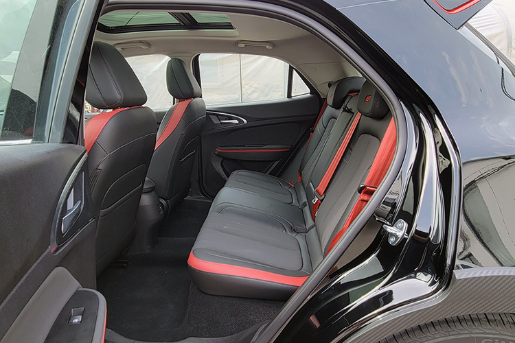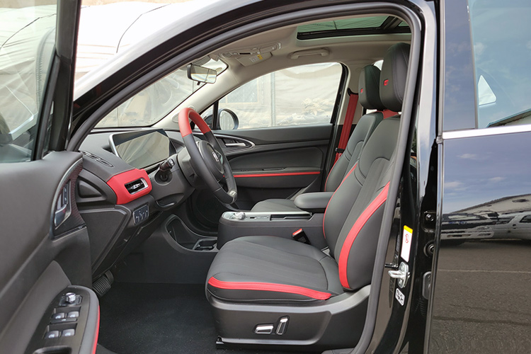 Длина пятидверки достигла 4254 мм (+19), а ширина — 1848 (+23). Высота и колёсная база прежние: 1596, 2650. Шины GitiComfort 225 (215/50 R18) доступны в половине обычных комплектаций Haomao, чего не скажешь о дисках с яркими акцентами, которые рифмуются с красными суппортами.