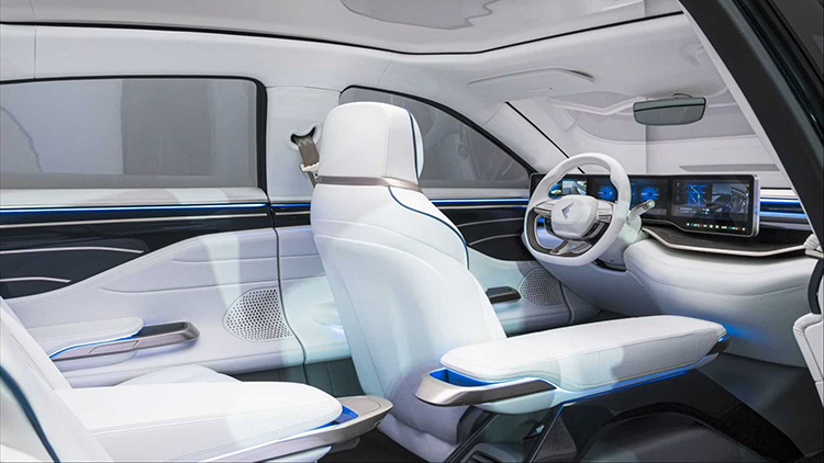 В ролике показана причудливая светотехника, которая «общается с внешним миром» посредством световых символов и надписей. Тем временем «абсолютно уникальный» дизайн салона «сочетает классику с передовыми технологиями», например, распознаванием лиц и «умными поверхностями».