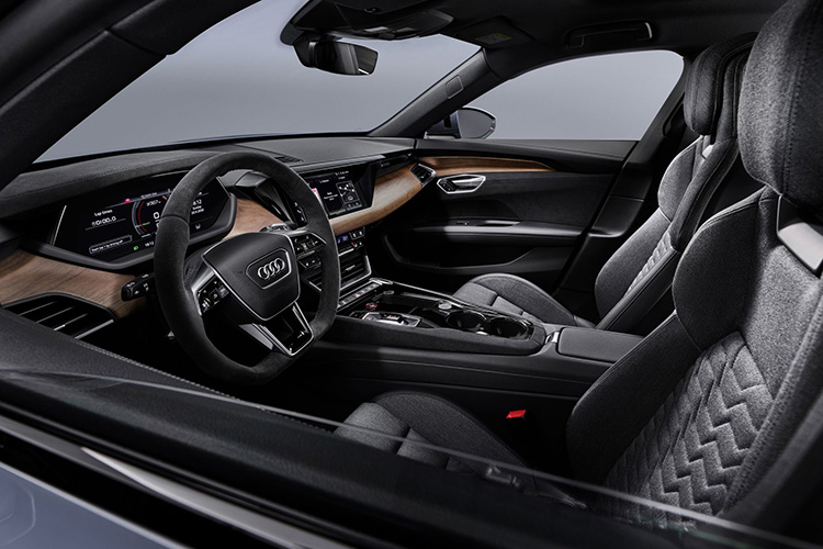 Объём переднего багажника составляет 85 л, заднего — 405 л. Аудиосистема Bang & Olufsen сожмёт отсек последнего до 366. Для модели Audi RS e-tron GT такое оборудование идёт как стандартное. Разумеется, в Audi гордятся использованием большого объёма переработанных материалов в отделке