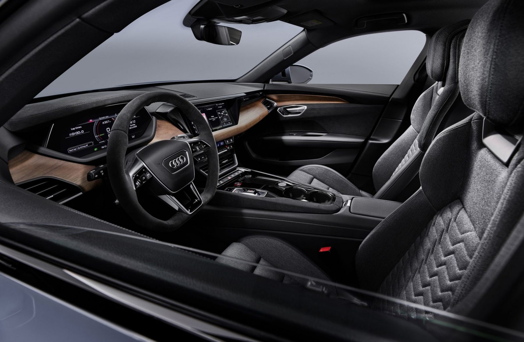 Объём переднего багажника составляет 85 л, заднего — 405 л. Аудиосистема Bang & Olufsen сожмёт отсек последнего до 366. Для модели Audi RS e-tron GT такое оборудование идёт как стандартное. Разумеется, в Audi гордятся использованием большого объёма переработанных материалов в отделке