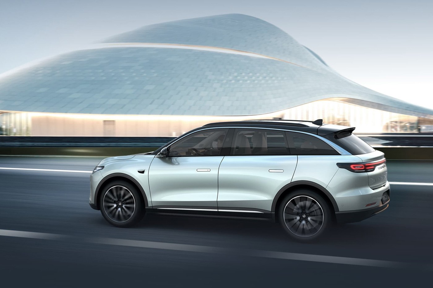 Паркетник базируется на новой модульной платформе C (двухрычажка спереди, пятирычажка сзади). Размеры: 4745×1890×1635 мм, между осями 2923. Дверные ручки сделаны выдвижными ради аэродинамики. Единственный зарядный порт прячется над правым задним колесом