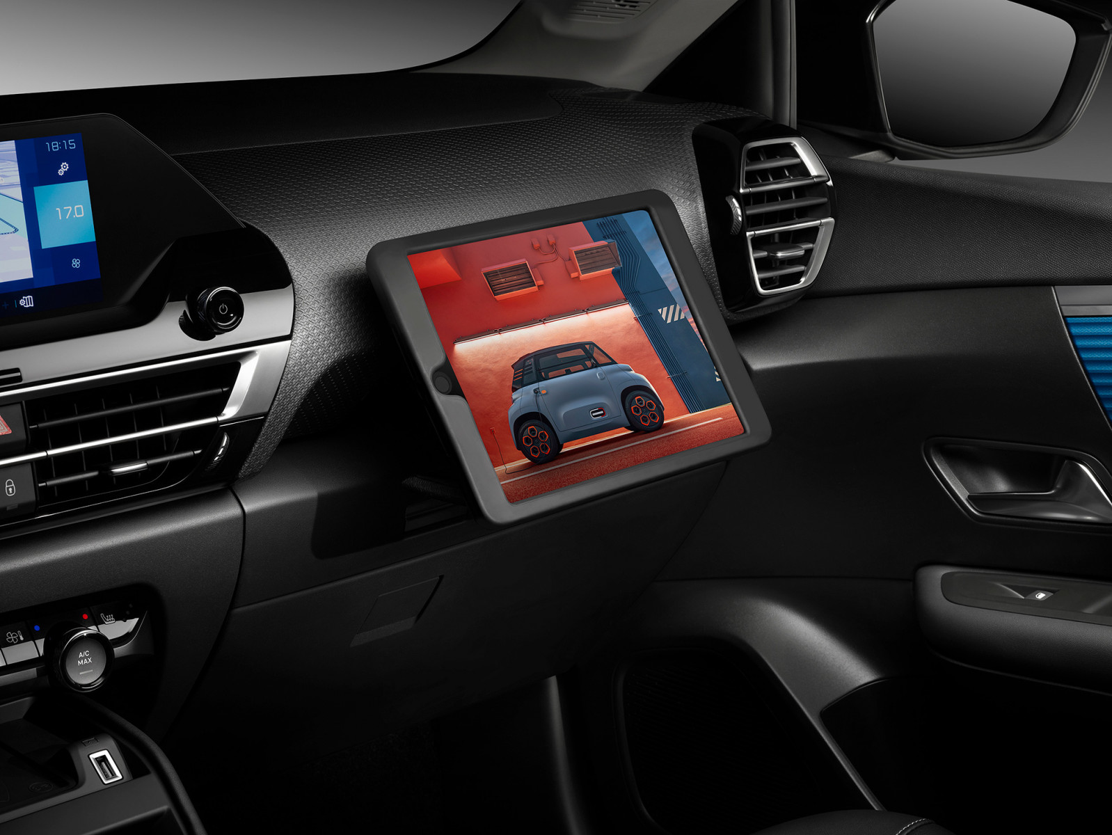 Вместе с машиной дебютирует технология Smart Pad Support Citroen. Это интегрированное в приборную панель выдвижное крепление под планшет с парой специальных оболочек под Apple iPad Air 2 или Samsung Tab A 10,5, и универсальной — под иные модели. Вообще, удобству пассажиров в дороге уделено особое внимание. Достаточно сказать, что в салоне есть 16 мест для хранения мелочовки с общим объёмом 39 л, в том числе выдвижной ящик спереди с нескользящим покрытием для хранения планшета, отсеки на консоли, зоны зарядки с портами USB и USB-C. В багажнике имеется двухпозиционный плоский пол, который можно зафиксировать в наклонном положении. По бокам же отсека встроены крючки для сумок, а в спинке дивана — люк для лыж.