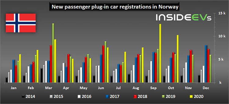 Всего в стране было продано 7,873 новых батарейных электромобилей (доля рынка 60,8%), 671 б/у электромобиль и 242 новых электрических минивенов. Вклад подключаемых гибридов (PHEV) в общую копилку составил 2,372 штук (доля рынка 18,3%). Таким образом суммарно BEV и PHEV обеспечили результат 10,242 штуки (79,1% рынка), что на на 68% больше аналогичных показателей прошлого года.