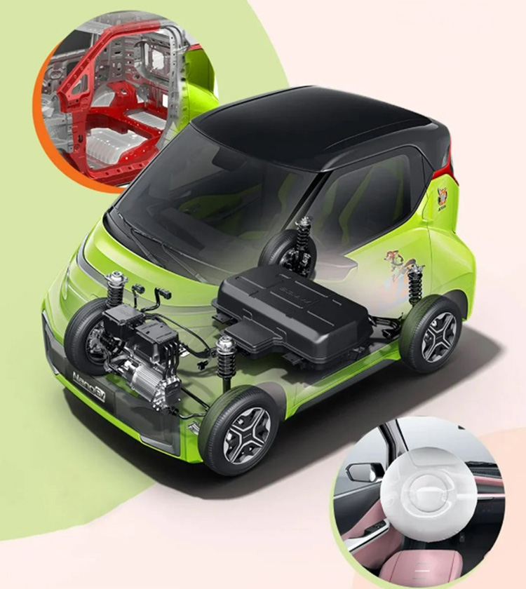 С технической части изменений тоже не очень много. В распоряжении водителя всё тот же небольшой электромотор на 32 лошадиные силы, который установлен на передней оси. Крутящий момент, однако, весьма неплохой для такой отдачи, он составляет 85 Нм. Малютка может достичь максимальной скорости в 100 километров в час. Батарея ёмкостью 28 кВт⋅ч, пожалуй, единственное новшество Nano EV относительно E200, у которого этот показатель равнялся 24 киловаттам. Она позволяет проезжать до 305 км по методике NEDC, против 270 на E200. В оснащение входят семидюймовая цифровая приборка, радио с Bluetooth и USB, электроприводы стёкол и зеркал, кондиционер и бесключевой доступ.